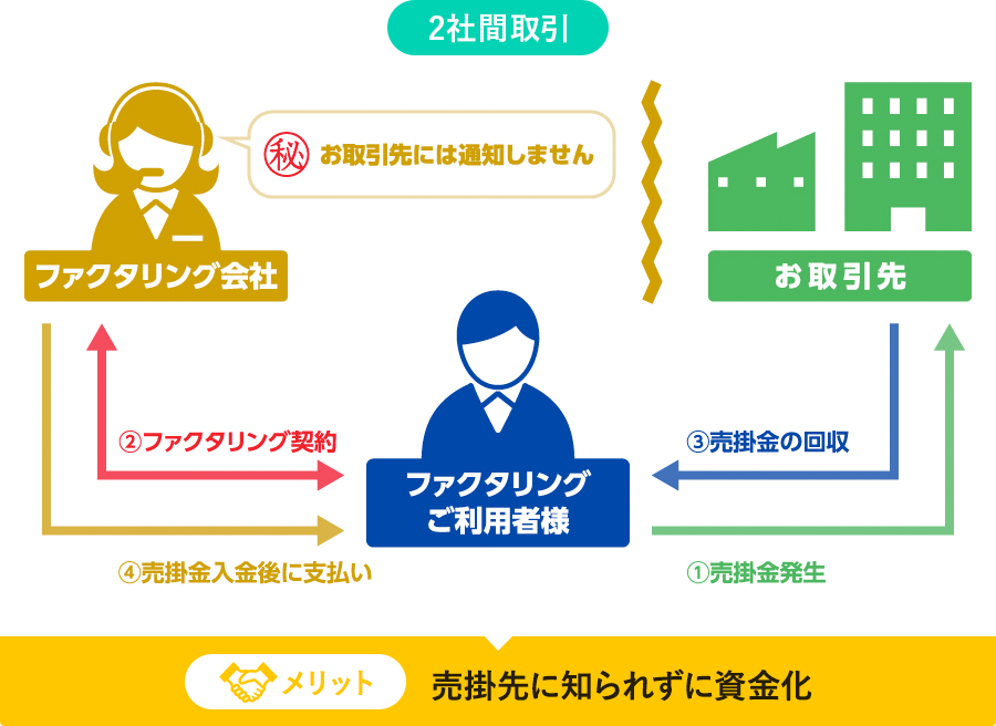 2者間ファクタリングの場合、売掛先への通知は必要ありません。お客様の状況に応じて対応させて頂きます。ご相談ください。