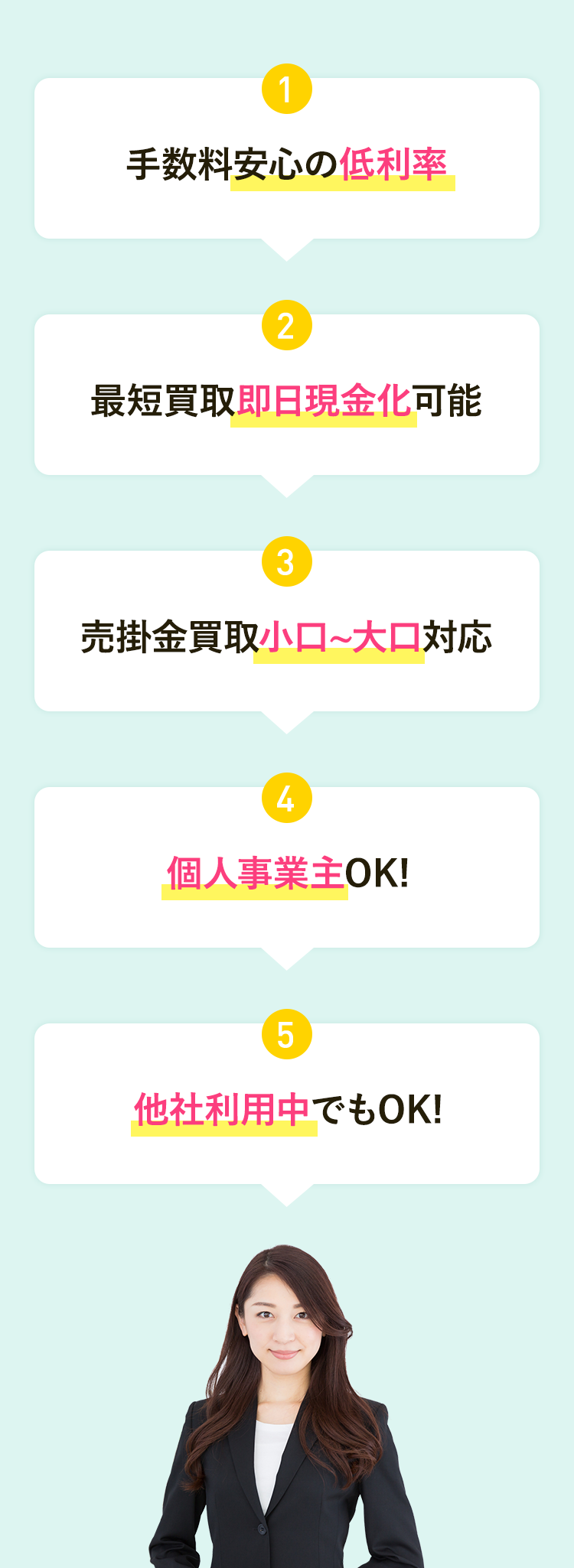 お支払期日が過ぎている売掛債権はお取扱いすることが出来ません。